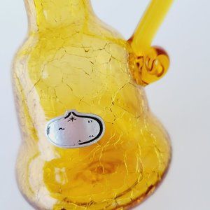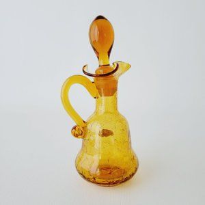 Hand Blown Amber Crackle Glass Cruet by Rainbow, Vintage Yellow Vinegar Bottle