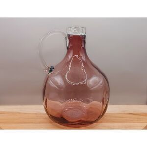 Hand Blown Amethyst Glass Round Jug Vase with Clear Applied Handle and Lip