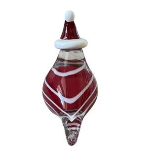 Hand Blown Art Glass CHRISTMAS CARDINAL 7in Red & White Candy Cane Swirl