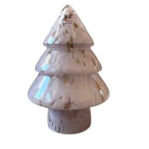 Hand Blown Art Glass CHRISTMAS TREE 9.5in Pastel Pink & White Marbled New