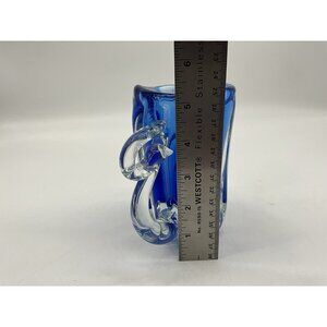 Hand Blown Art Glass Mis-Shapened Blue and Clear Glass 5.25 Inches Tall w/Handle