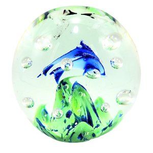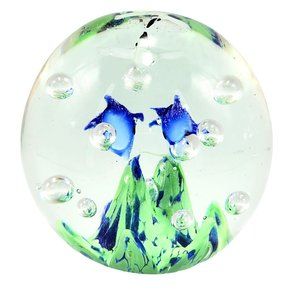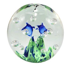 Hand Blown Art Glass Under the Sea Paperweight Bullicante Dolphins Sea Gulls VTG