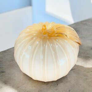 Hand Blown Cased On White Peach Pink Fruit Apple Paperweight Glass Hand Made VTG