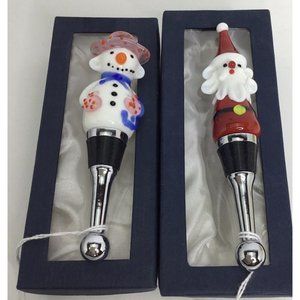 Hand Blown Christmas Wine Bottle Stopper NEW Santa Glass Snowman