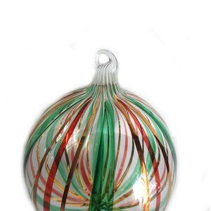 Hand Blown Clear Christmas Ball with Green Red Gold Stripes