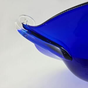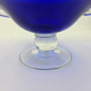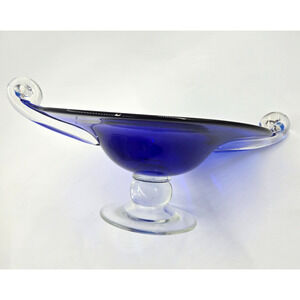 Hand Blown Cobalt Blue Glass Pedestal Bowl Footed Twist Handles Centerpiece 14” handle to handle