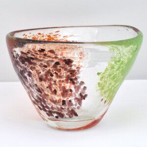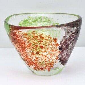 Hand Blown Contemporary Art Glass Vase, Red Green Purple, Speckled