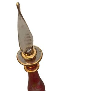 Vintage Egyptian Burgundy Art Glass Perfume Bottle Decanter Gilt Gold Accent