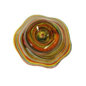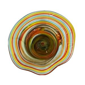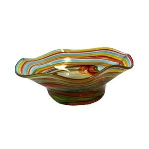 Hand Blown Fused Glass Swirls Hi Lo Curved Table Decor Bowl 10" x 10"