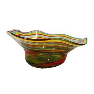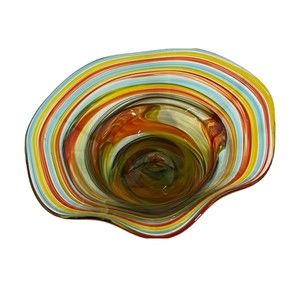 Hand Blown Fused Glass Swirls Hi Lo Curved Table Decor Bowl Centerpiece 10" x 10"