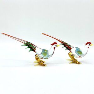 Hand Blown Glass Art Rooster Figure Bird 6.5x3 Colorful Red Green Yellow / LOT 2