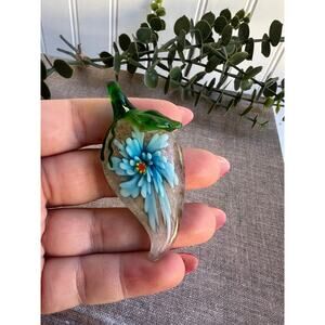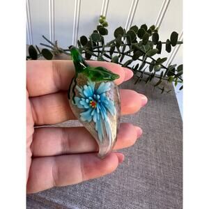 Hand Blown Glass Flower Pendant | Blue Floral Art Glass Jewelry