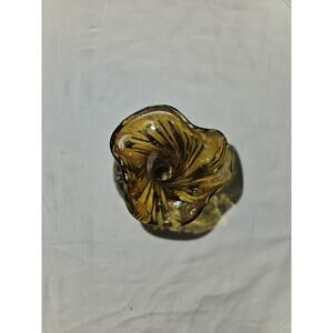 The gold and amber color of the vase adds a warm and inviting feel to any room. This vase is perfect for collectors of abstract art and hand-blown glass. It is a unique addition to your collection and is sure to impress. Get your hands on this one-of-a-kind piece today!