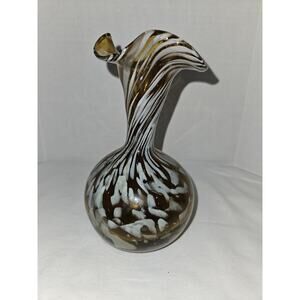 Hand Blown Glass Gold Amber And White Vase 6" Tall 4" Wide