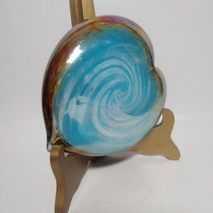 Hand Blown Glass Heart Paperweight Multi Color Swirl Glitter Spiral Center Heavy