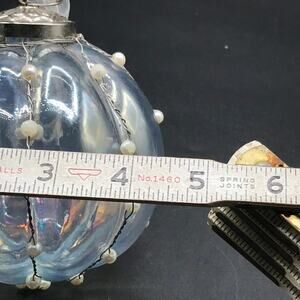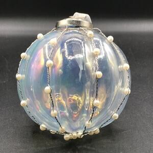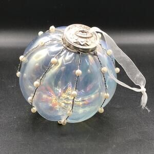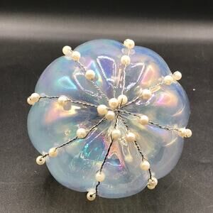 Hand Blown Glass Heavy Round Iridescent Beaded Christmas Garden Ornament 4.5"