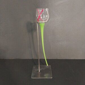 Hand Blown Glass Long Stem Flower Inspired Decor With Stand