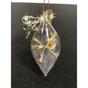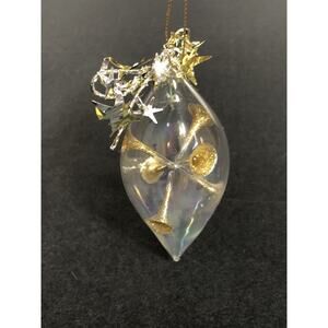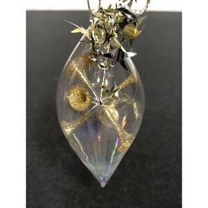 Hand Blown Glass Ornament Glitter n Gold Christmas Teardrop by Russ Retro 5"