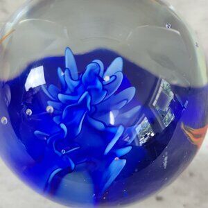 Hand Blown Glass Paperweight Aquarium Orange Fish Blue Coral Art Decor 3" Sphere