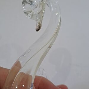 Hand blown glass swan figurine on Base Multicolor Blue green white purple black Swan has brown beak See pictures for lay flat measurements Approximate measurements Height 5.5" 3.5" length 2.5" width No chips or cracks Has minor scratches as pictured Collectible table art figurine