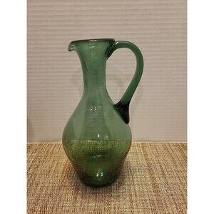 Hand Blown Green Glass Pitcher With Bubbles At Bottom
