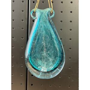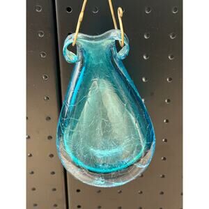 Hand Blown Hanging Vase Blue Crackle Glass