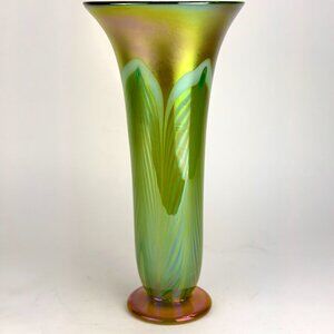 Hand Blown Iridescent Art Glass Decanter, Green & Pink
