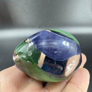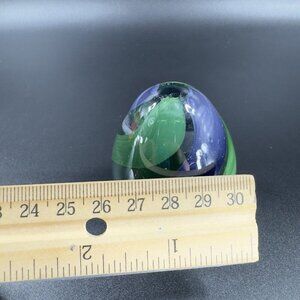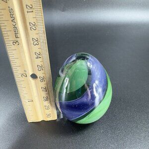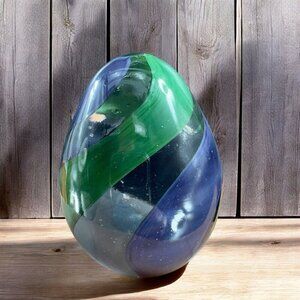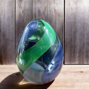 Hand Blown Italian Glass Paperweight Figurine With Clear Blue Green Swirl Italy