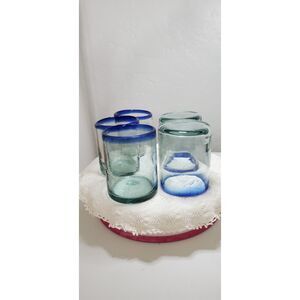 Hand Blown Mexican Glass Pitcher and 5 matching Glasses ~Merrari~