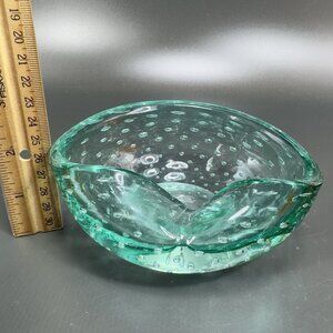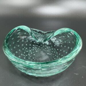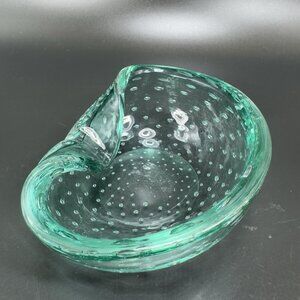 Hand Blown Murano Art Glass Green Dish Bowl Folded Edge Venetian Italian Glass