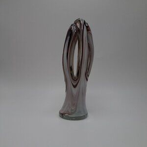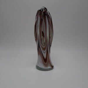 Hand Blown Murano Style Art Glass Vase Brown Swirl Design Mexico Vintage