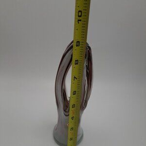 This exquisite hand blown art glass vase features a captivating brown swirl design, reminiscent of Murano-style craftsmanship. Made in Mexico, it adds a touch of elegance to any decor. Ideal for art glass collectors or as a unique gift.