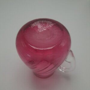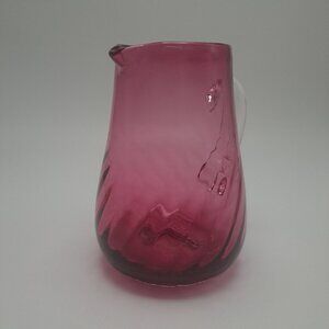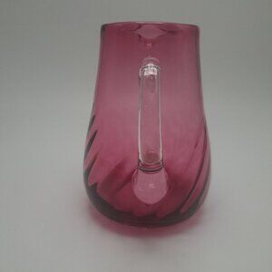 Hand Blown Pilgrim Cranberry Glass Pitcher Applied Clear Handle