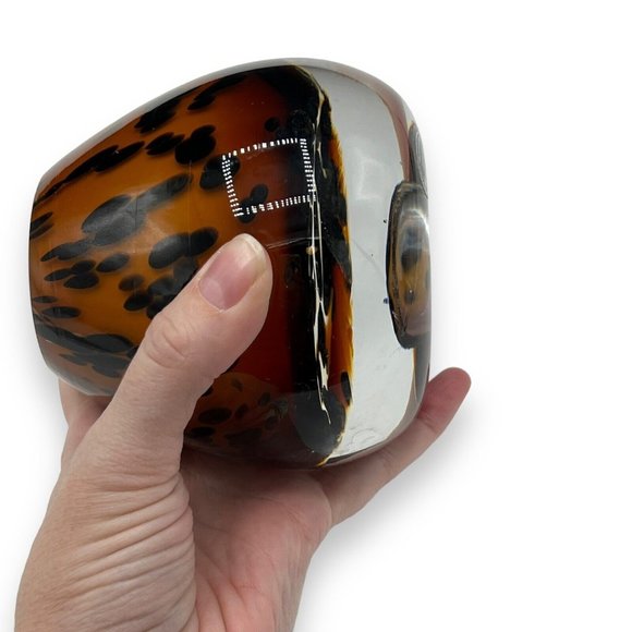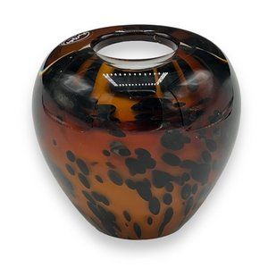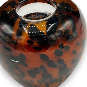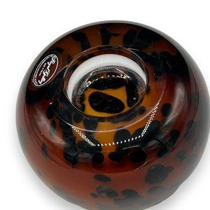 Hand Blown Poland ART GLASS Candle Holder Tea Light Brown Black Spots Large