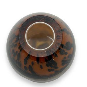Hand blown Large Tea Light Candle HolderGlass Art with brown and black spots