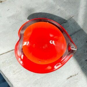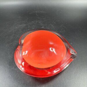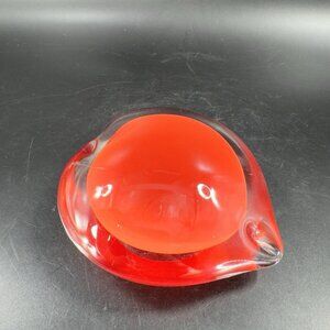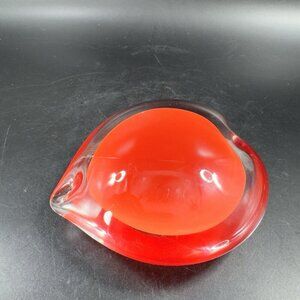 Hand Blown Red Heart Glass Paperweight Figurine Cased Heavy Glass Figure VTG