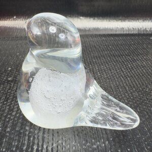 Hand Blown Small Bird Figurine Clear White Center With Bubbles Glass Figure VTG