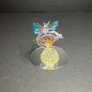 Hand Blown Spun Art Glass Pink & Blue Butterfly on Flower Decorative Figurine