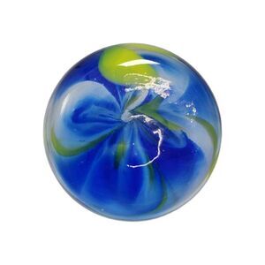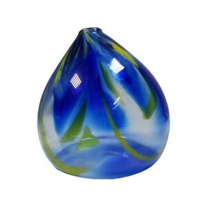 Hand Blown Stretch Art Glass Yellow Cobalt Blue Bud Vase Clear Rainbow Swirl.