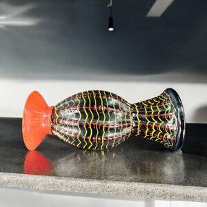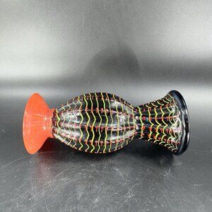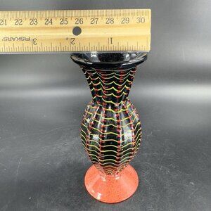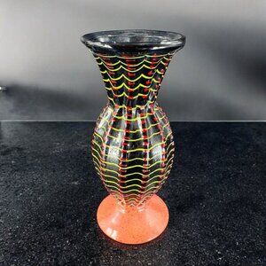 Hand Blown Studio Art Glass Vase Halloween Decor Artist Signed Red Black Spider