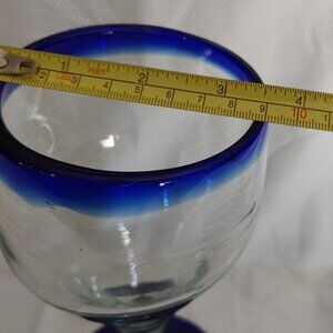 Hand Blown Wine Glass - Cobalt Blue Rim & Base