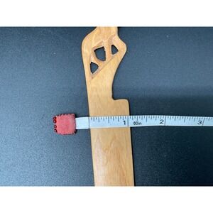 Hand carved African wooden letter opener featuring a stylized safari lion at the handle. Likely crafted as a traditional souvenir or artisan piece, it blends functional design with regional artistry. May show light signs of wear consistent with age. Please review all photos for an accurate description. Please refer to the photos for measurements.