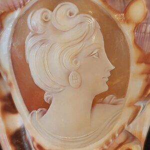 Hand Carved Cameo on 4 x 3 Conch shell