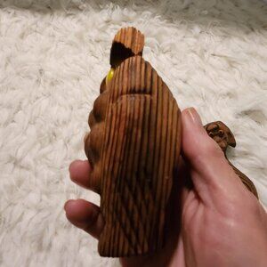 Hand Carved Cryptomeria Japan Wony Owl & Dog Figurine Set