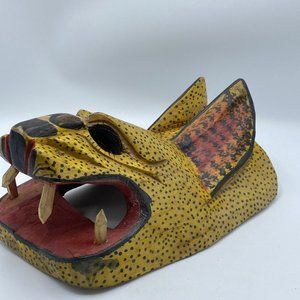 Hand Carved Guatemalan Cheetah Serval Cat Mask.