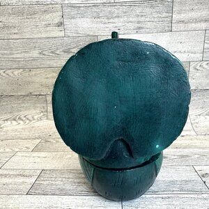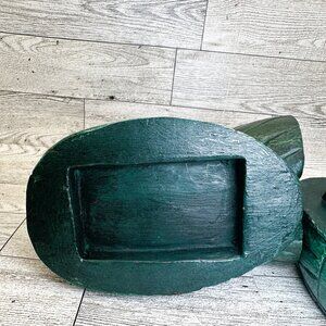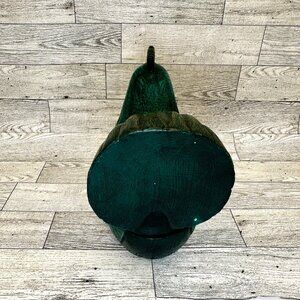 Hand Carved Hand Painted 2 Piece Green Wooden Rooster Trinket Box