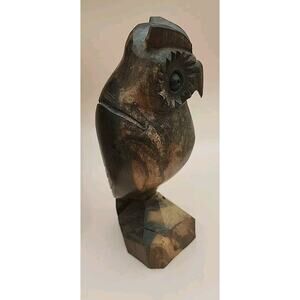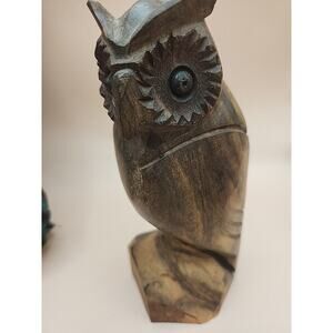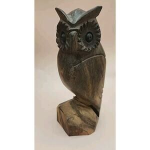 Hand Carved Ironwood Wood Owl Figurine Statuette 7" statue