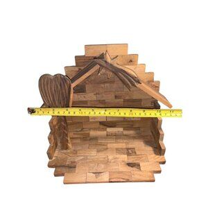 From the estate of my mother in law's personal collection. This beautiful handmade olive wood manger with figures and animals, wood carved and very detailed. 12 pieces plus manger makes it's 13 total.