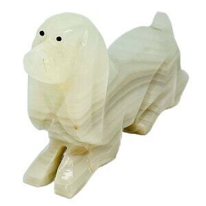 Hand Carved Onyx Corgi Dog Lucid Vintage Handmade Statue Stone Marbled Cream