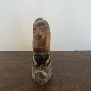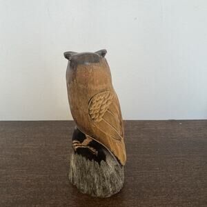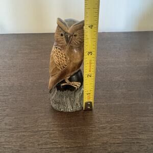 Hand Carved Owl Water Buffalo Horn Bird Figurine Acquired in Italy Gufo Artisan